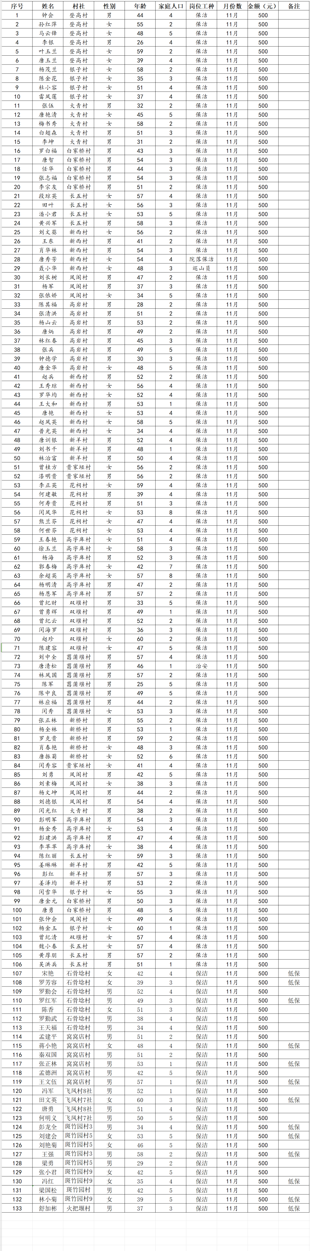 2024年11月遂宁经开区就业扶贫公益性岗位补贴发放花名册