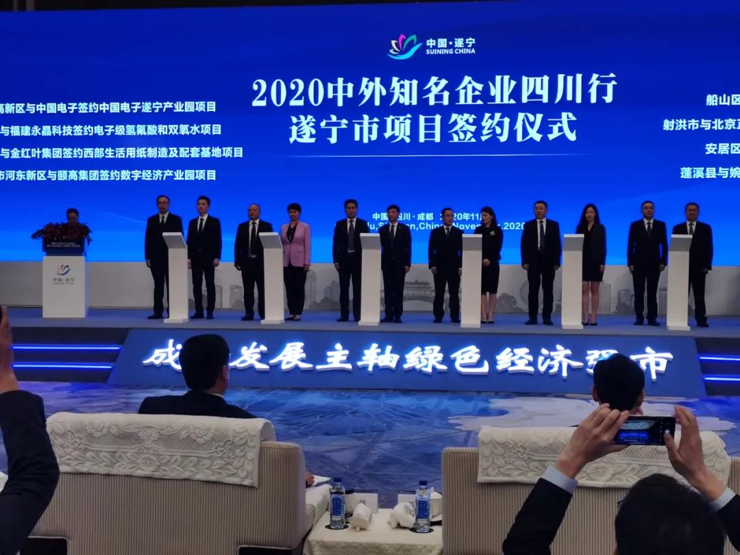 11月17日,由四川省人民政府主办的“2020中外知名企业四川行”活动在成都开幕,遂宁市投资推介会暨项目签约仪式同步举行。遂宁经开区党工委书记向莉以及蜂巢能源科技有限公司、金红叶纸业集团有限公司、重庆路多电子科技有限公司等10余家企业相关负责人参加活动。