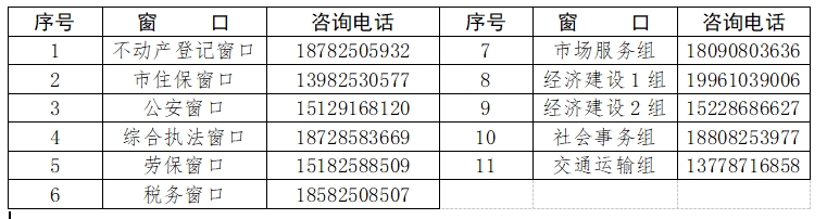 经开区政务服务大厅紧急事项咨询服务电话一览表