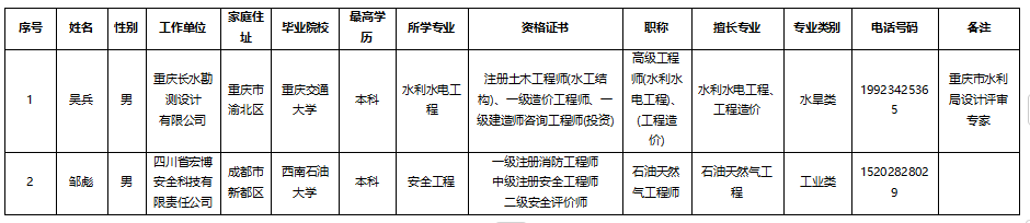 遂宁经开区应急管理和安全生产专家库拟增补名单