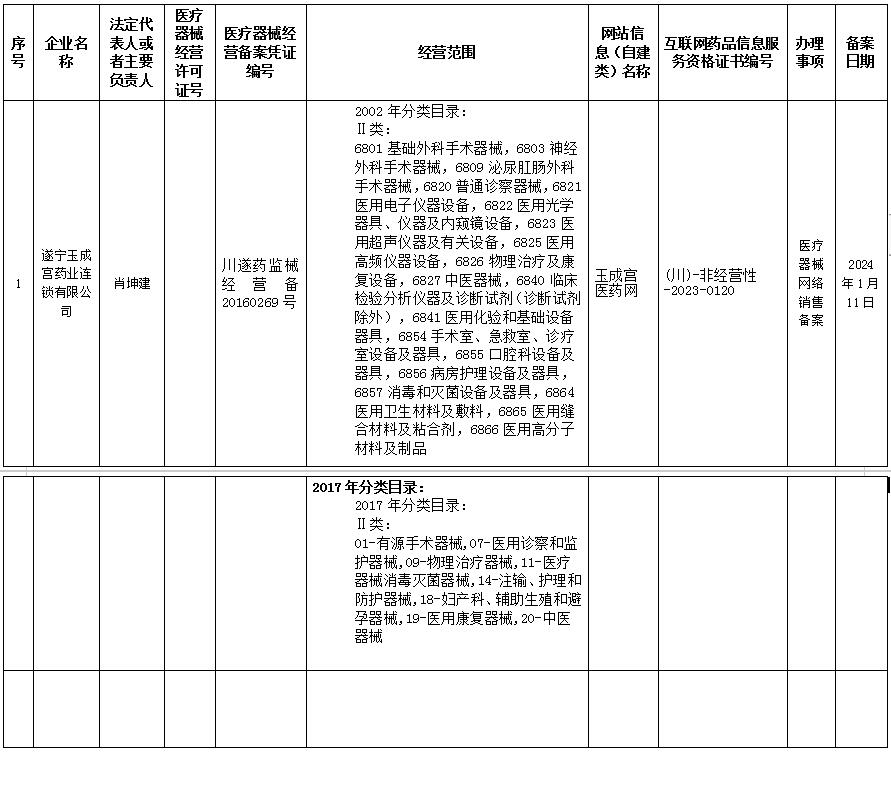 医疗器械网络经营企业备案信息公告 (自建类 2024年第1期)