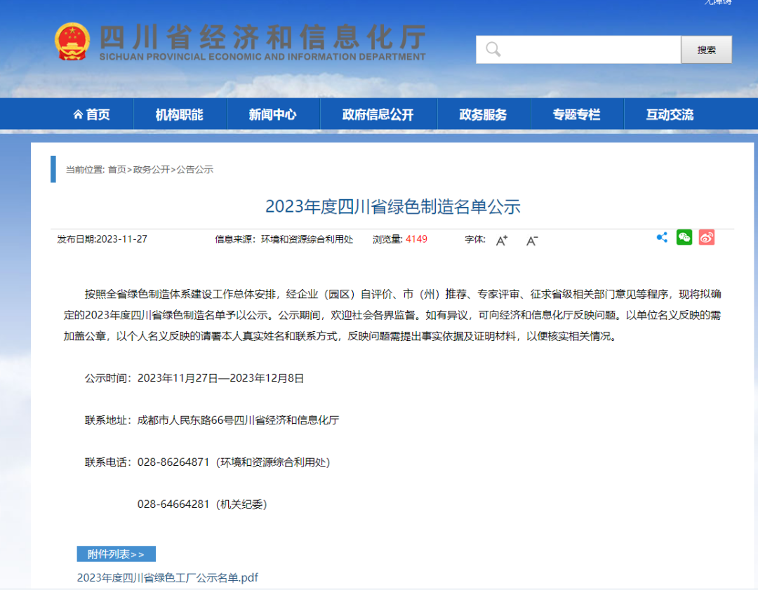 产业发展再添“绿意”!2023年度四川省绿色制造工厂,遂宁经开区+1
