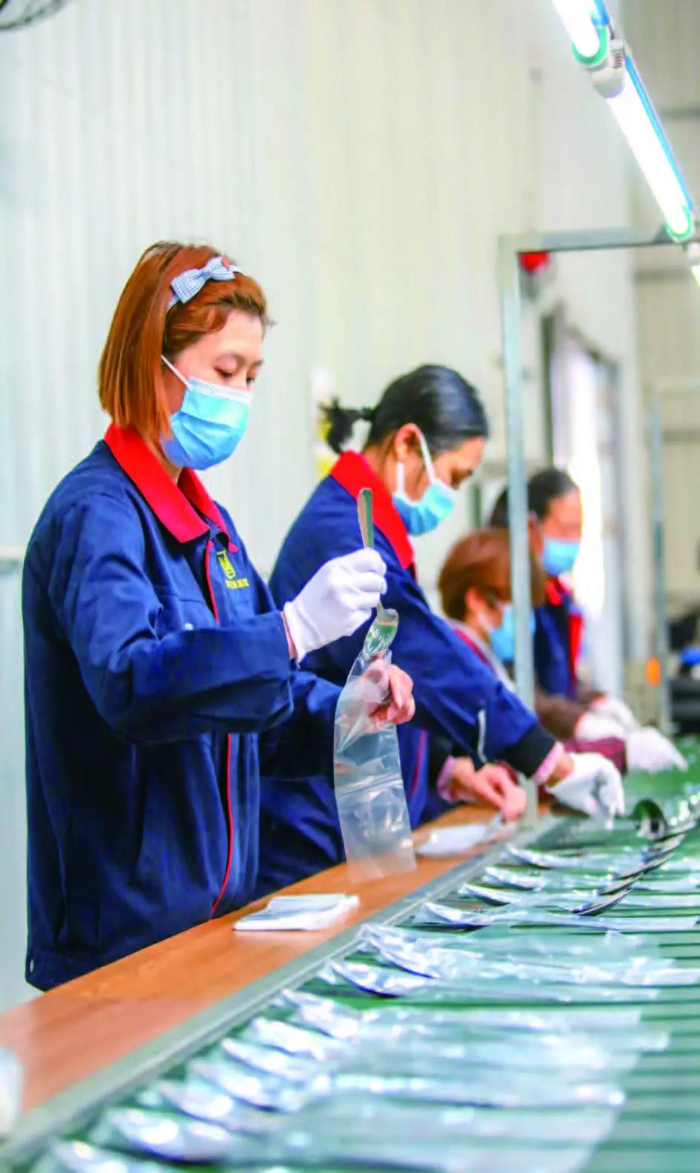 遂宁经开区凡立美科技有限公司,工人正在生产线上赶制订单 ( 刘昌松 摄)