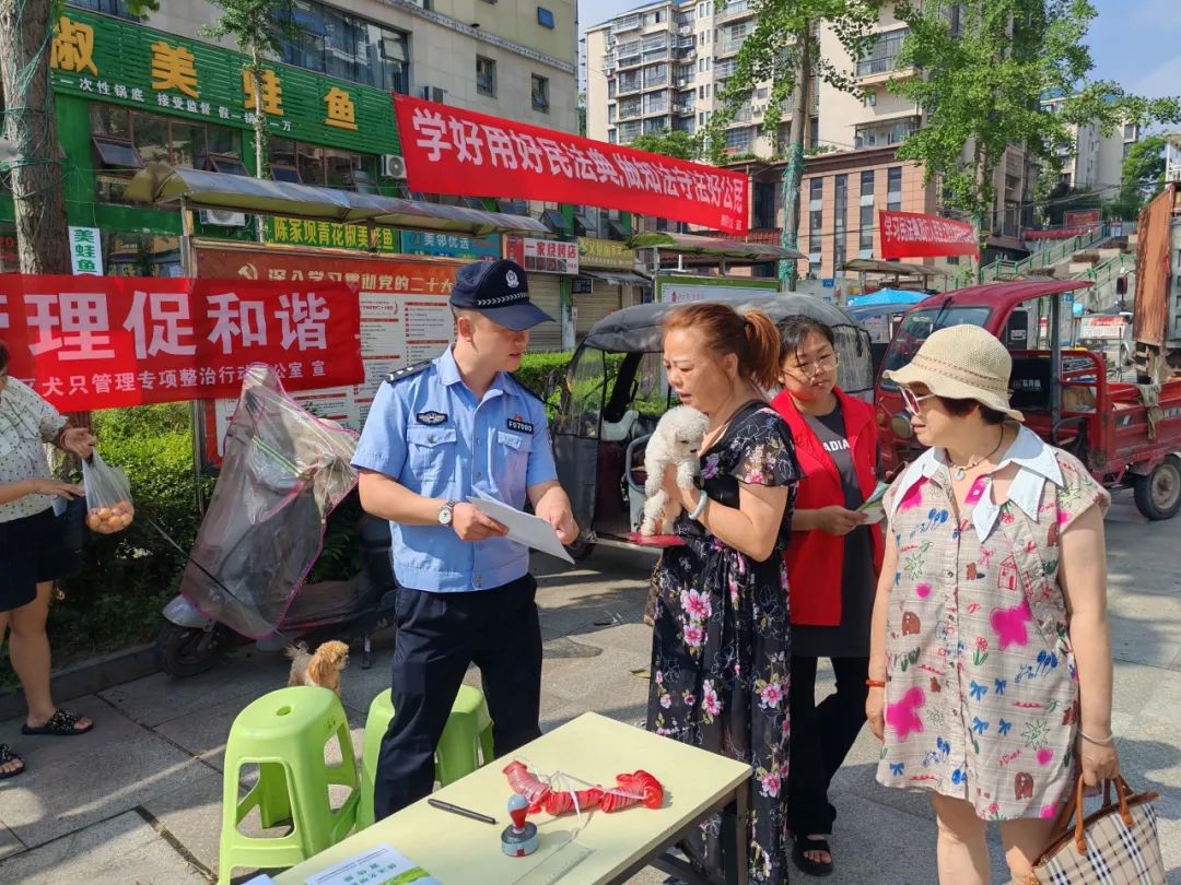 为增强辖区居民文明养犬意识,5月29日上午,由经开区公安分局、区综合行政执法局牵头,联合区党群工作部、建设交运局、社会事业局、市场监督管理局经开区分局、统筹城乡建设发展中心和各镇街在遂州北路183号(原美好家园门口)、泰佳尔阳光城、机场小区、西园社区党群活动中心外广场、新桥镇镇政府门口,同步开展2025年全市重点民生实事之“及时查处和有效治理不文明养犬行为,提升市民文明养犬意识”主题教育活动。