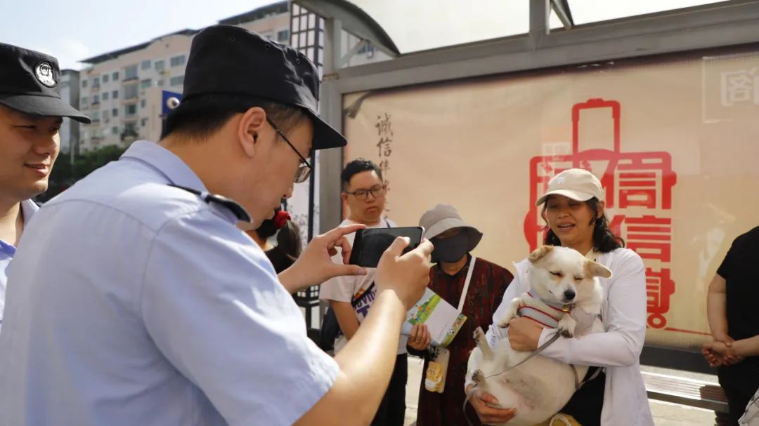 活动现场设立了犬只免疫、办证登记及养犬咨询综合服务台,方便市民朋友现场办理养犬登记证明,并通过广播播放、展板展示、宣传单发放等多种形式为市民答疑解惑,吸引了众多市民携犬前来参与,现场氛围热烈有序。