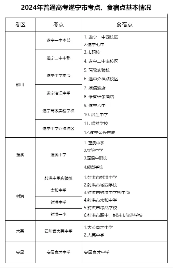 附件:1.2024年普通高考遂宁市考点、食宿点基本情况