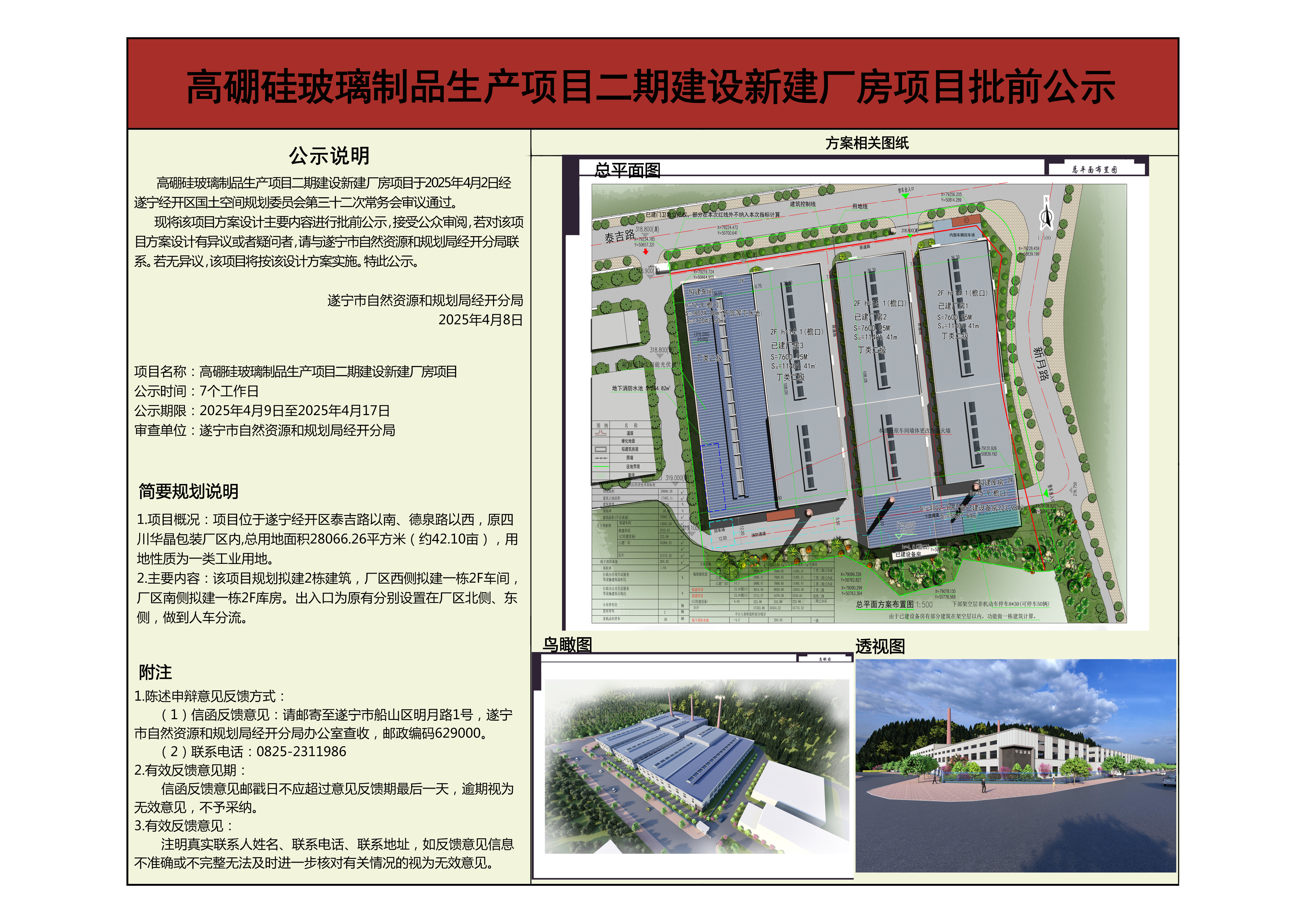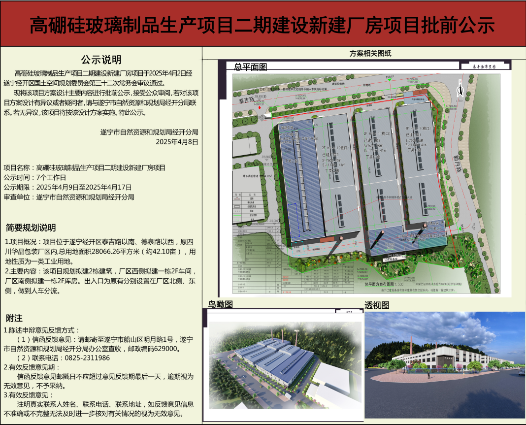 遂宁经济技术开发区高硼硅玻璃制品生产项目二期建设新建厂房项目批前公示