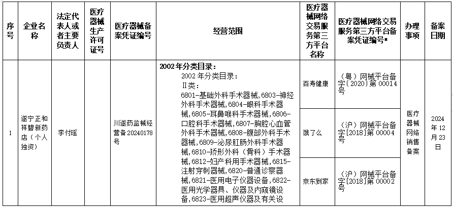 医疗器械网络经营企业备案信息公告(入驻类 2024年第5期)
