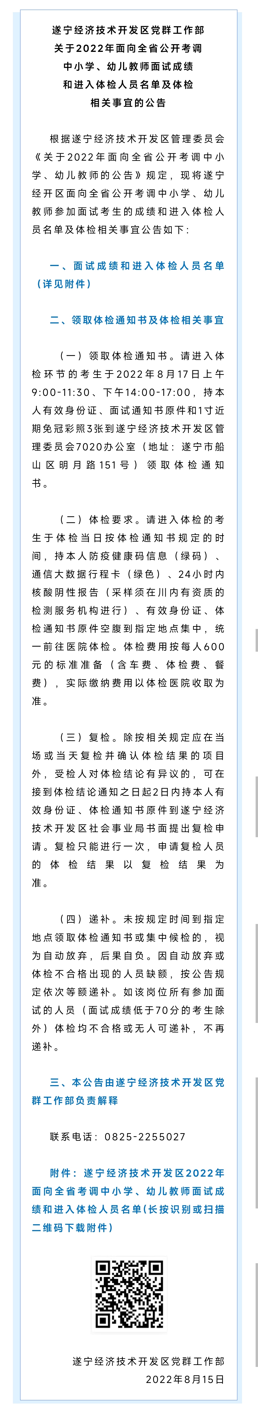 人事招聘|遂宁经开区2022年公开招聘中小学、幼儿教师面试成绩及进入体检人员名单通知来了!