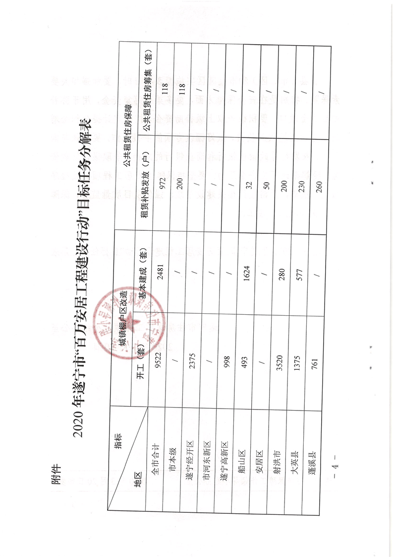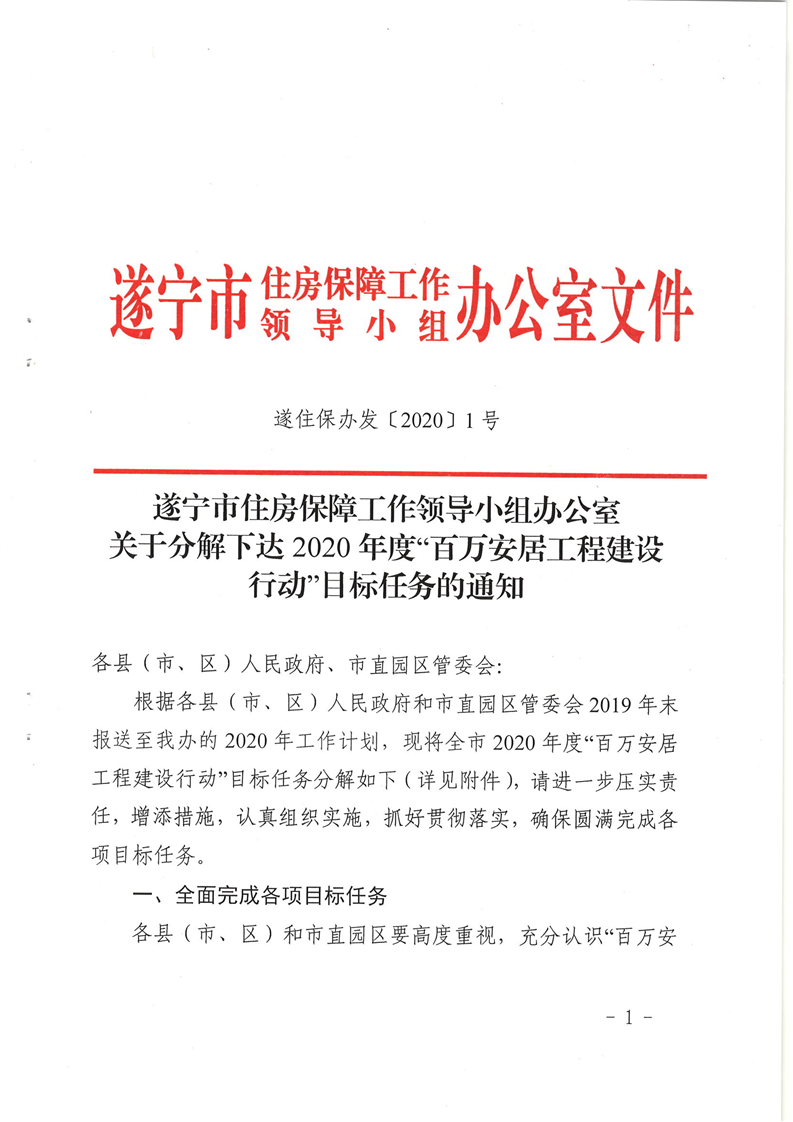 关于分解下达2020年度“百万安居工程建设行动”目标任务的通知