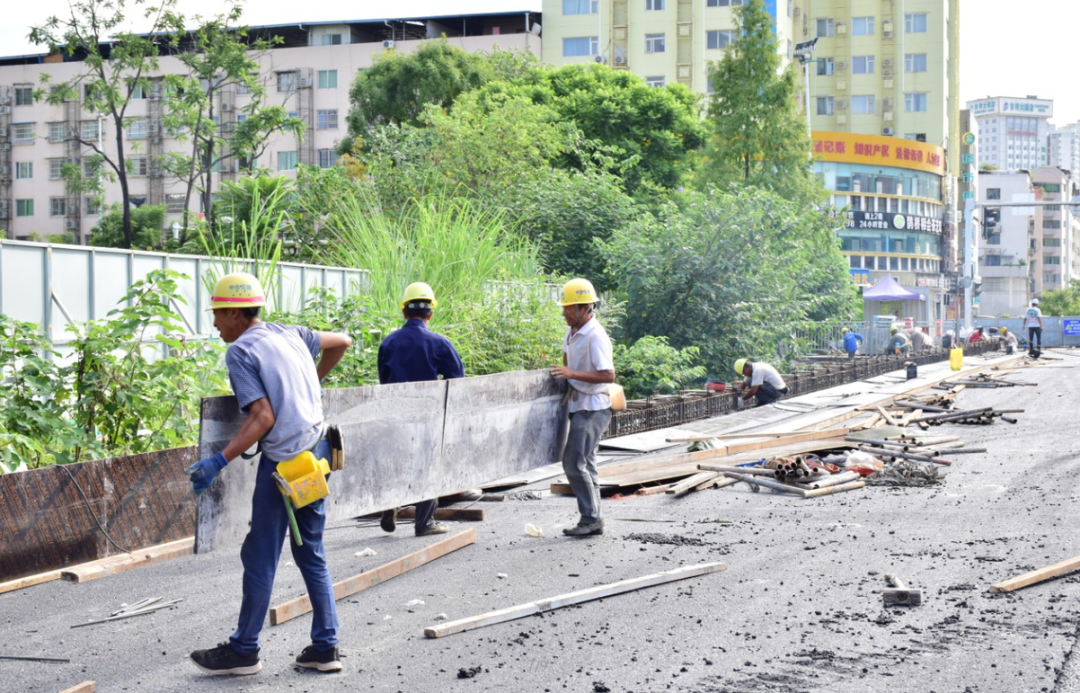 9月25日上午,记者走进位于遂宁经开区的明月桥拆除重建项目现场看到,该项目主体已完工,铺设的沥青面层平整光洁,施工机械穿梭在路段尾部,20余名工人正在进行护栏安装等作业,全力冲刺项目收尾工作。