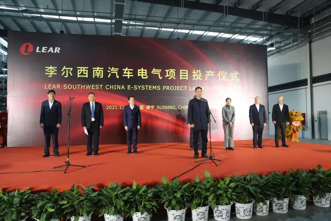 遂宁经开区党工委主要负责人对李尔西南汽车电气项目投产表示祝贺。她表示,遂宁经开区将紧紧围绕市委市政府关于装备制造的战略部署,把汽车及零部件产业作为重点发展的主导产业之一,坚持企业至上,始终把企业捧在掌心,将企业发展过程中遇到难点、堵点、痛点,作为服务的着力点和风向标;坚持服务至上,紧盯企业的政策需求、服务需求,让企业办事“来得放心、办得顺心、走得开心”;坚持效率至上,为企业排忧解难、清好路障,让企业在园区安下心来、扎下根来。她希望,李尔公司以此次项目投产为契机,积极抢占市场,抢抓新能源汽车行业发展趋势,加大资金技术投入,让遂宁分公司成为李尔公司在亚太地区的标杆工厂;希望欧美产业园加快推进二期项目建设,加大汽车零部件等项目招引力度,不断完善产业链条,为全市高质量筑“三城”兴“三都”、加速升腾“成渝之星”贡献力量。