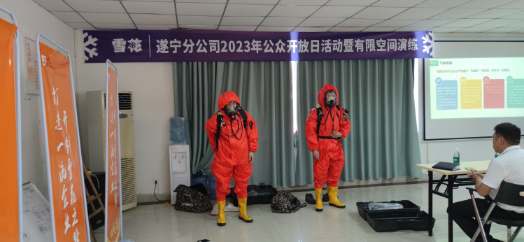 参会人员观看学习了有限空间的辨识管理和作业流程视频课件。华润雪花以企业有限空间作业的规范要求与到会观摩人员进行了交流,并现场讲解示范正压式呼吸器等救援器材的操作使用。