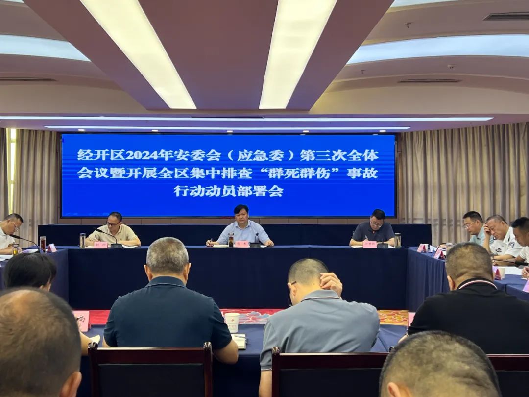 7月19日,遂宁经开区组织召开2024年安委会(应急委)第三次全体会议暨开展全区集中排查“群死群伤”事故隐患行动动员部署会。区党工委副书记、管委会主任熊杰出席会议并讲话。区党工委副书记、管委会常务副主任谢君环主持会议,全体在家委领导参加会议。