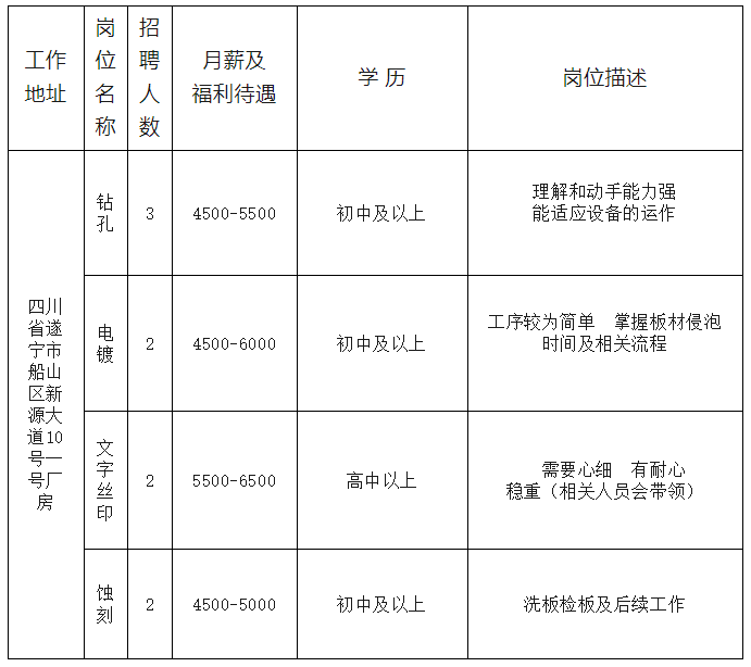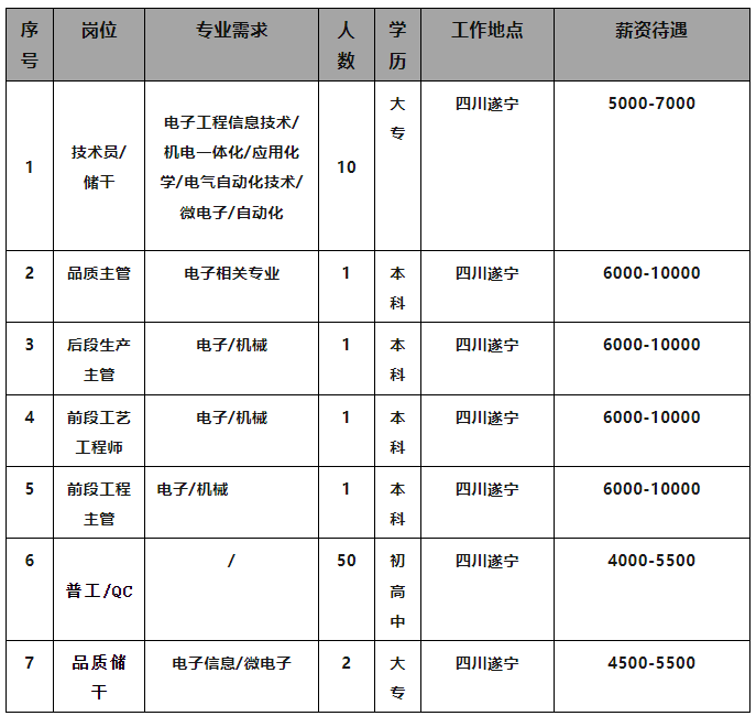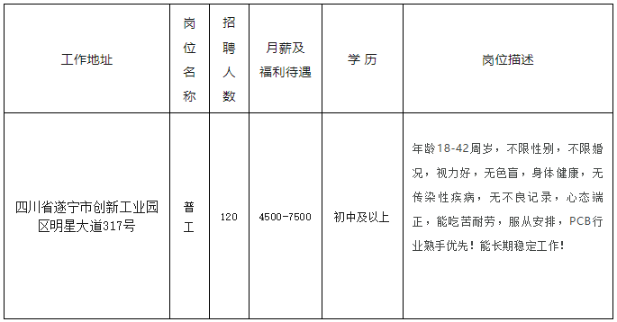 面试地址:四川省遂宁市经济技术开发区兴宁路36号(遂宁火车站乘21路A到玉龙立交站下)