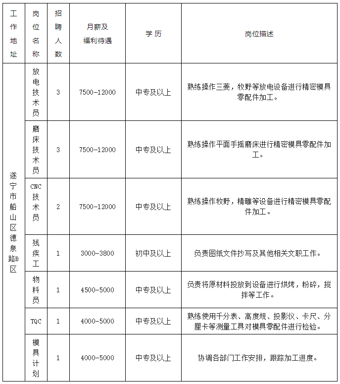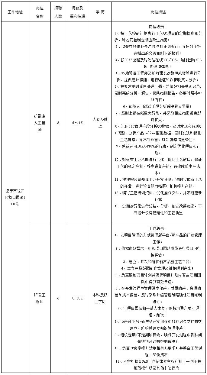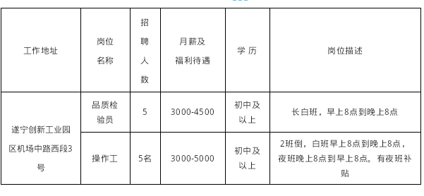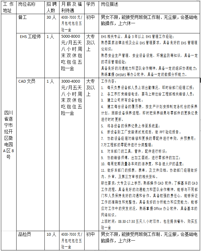 过年回家找工作 来年务工不用愁! 遂宁经开区这些企业正在招聘!