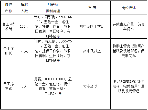 4、员工入职即享受七险;夜班补贴20元/人/晚;在职员工享工龄奖、生日福利、免费职业健康体检;开工红包;