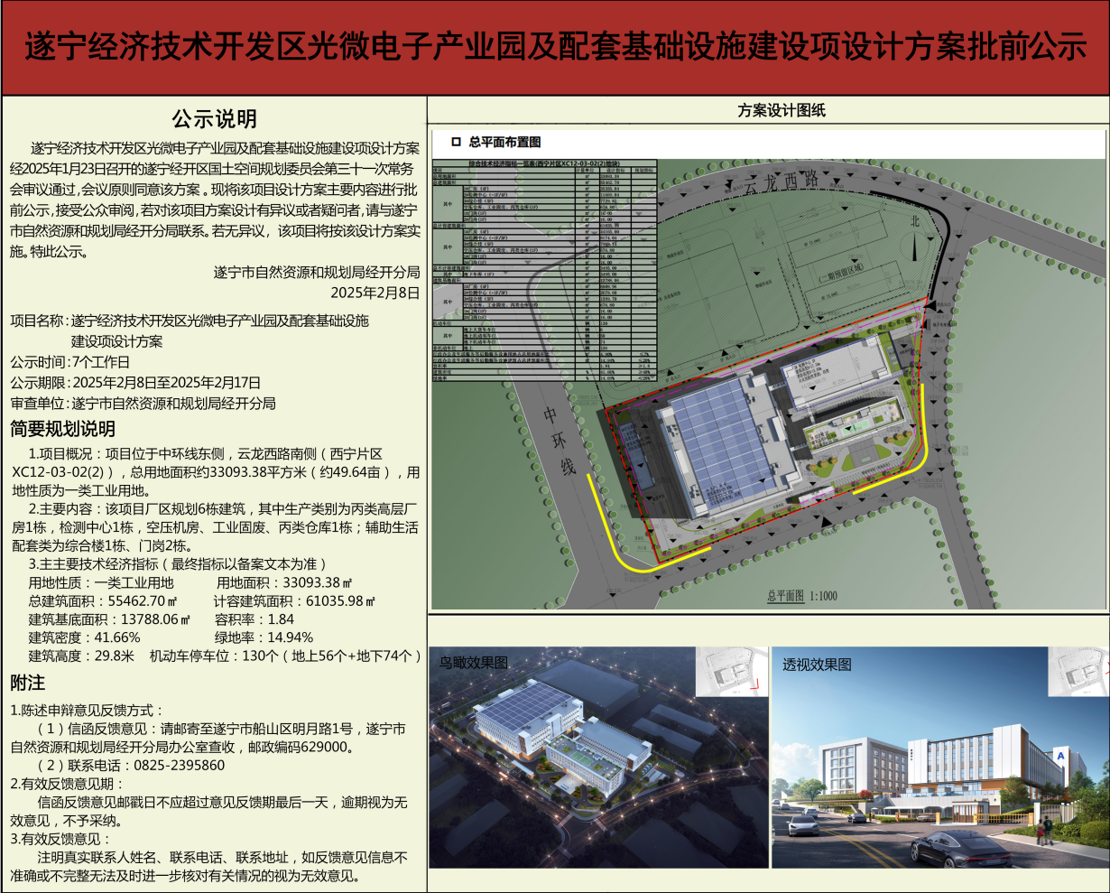 遂宁经济技术开发区光微电子产业园及配套基础设施建设项设计方案批前公示