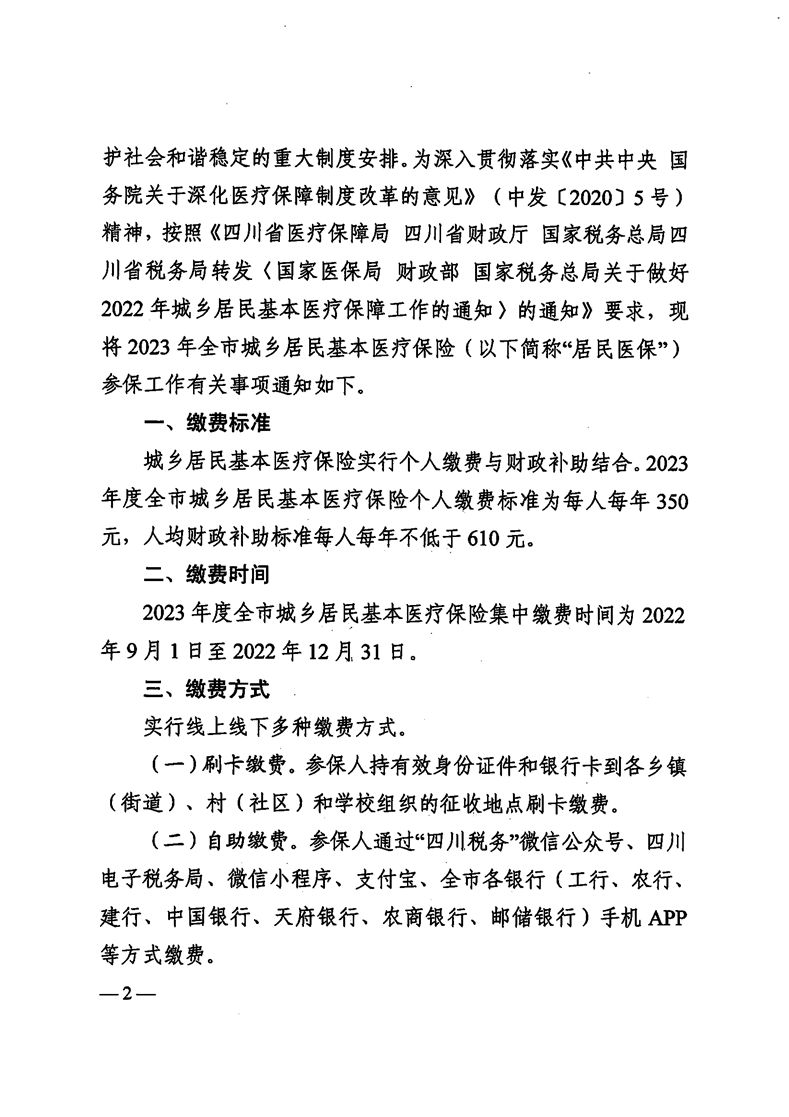 【转发】关于做好2023年全市城乡居民基本医疗保险参保征收工作的通知