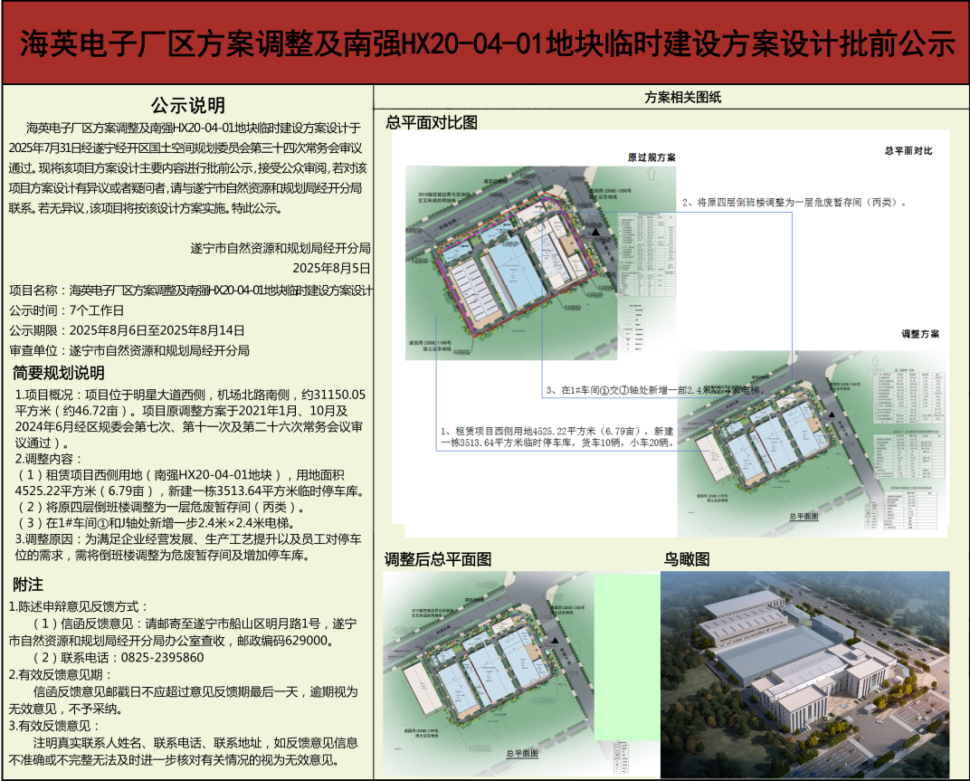 海英电子厂区方案调整及南强HX20-04-01地块临时建设方案设计批前公示