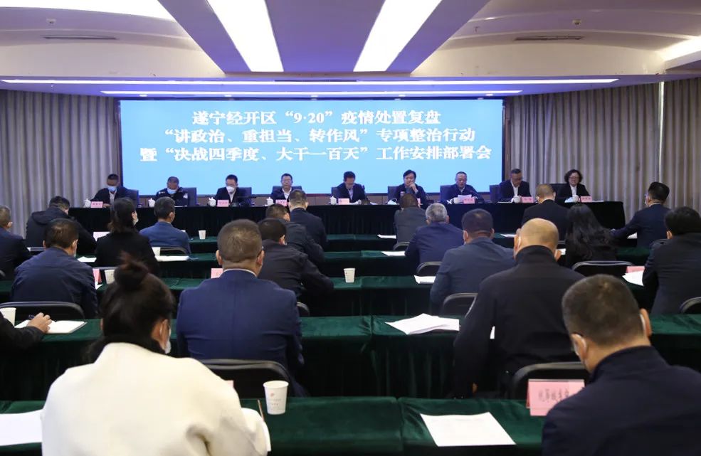 会议通报了遂宁经开区“9.20”疫情处置复盘情况,对“讲政治、重担当、转作风”专项整治行动以及“决战四季度、大干一百天”进行工作安排。