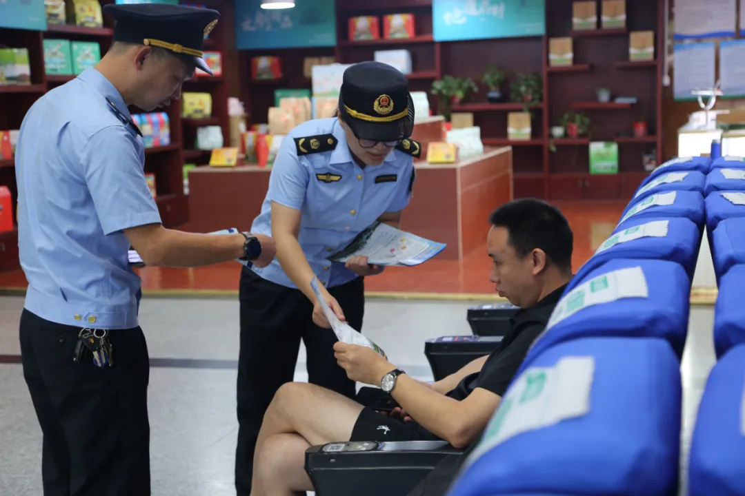 “个人或团队出行时,一定要选择正规的客运车辆,选择乘坐有企业标识、服务监督卡、有监督举报电话的合法经营的班车、出租车或公共汽车。”另一边,一组交通执法的工作人员也拿着宣传单对火车站、汽车站周边的市民开展点对点宣传,引导广大群众不参与非法营运,自觉抵制和乘坐非法营运车辆。