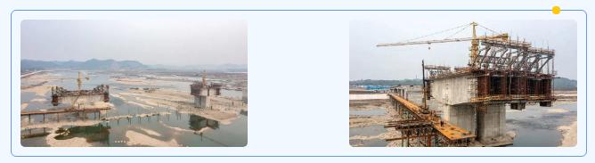 在项目现场,可以看到正在建设中的黄连沱大桥和渠河中桥的下部结构均已完成,施工方正抓紧进行路基开挖和上部桥梁建设施工。在完成进场作业人员安全培训教育工作后,从1月30日开工到现在,项目的路基工程已填至四千方,两处涵洞开挖完成,八字墙也已换填结束。桥梁工程中所涉及的主墩爬梯、钢便桥以及相关检修工作已全面展开,相关人员、机械等已就位,预计3月初全面投入桥梁建设中。