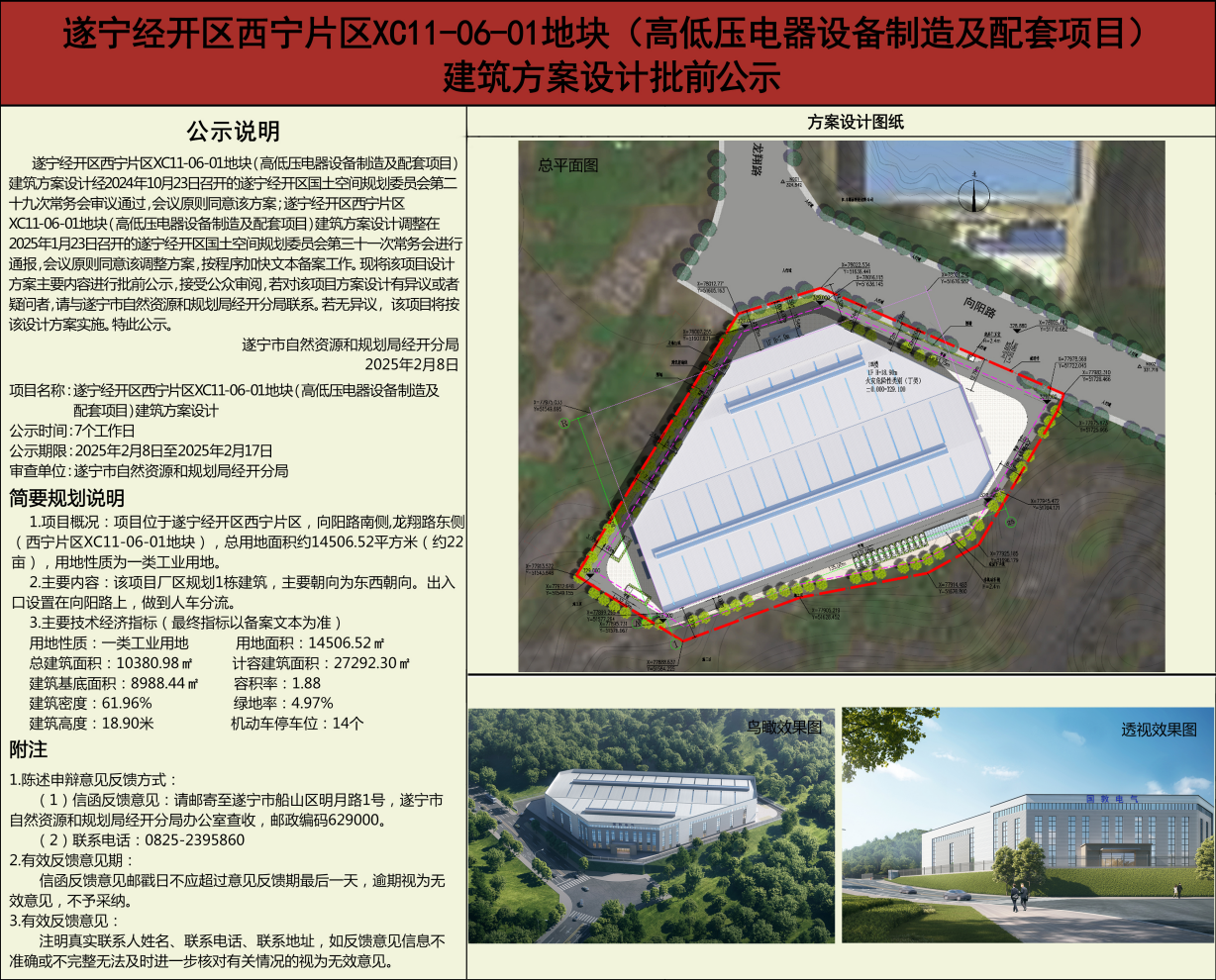 遂宁经开区西宁片区XC11-06-01地块(高低压电器设备制造及配套项目)建筑方案设计批前公示