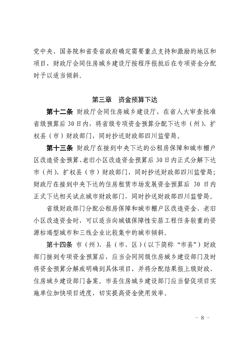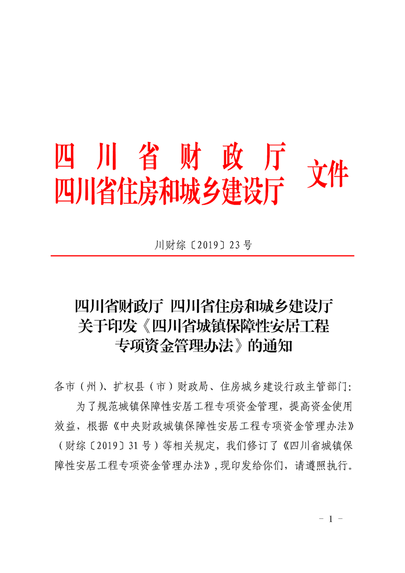 关于印发《四川省城镇保障性安居工程专项资金管理办法》的通知
