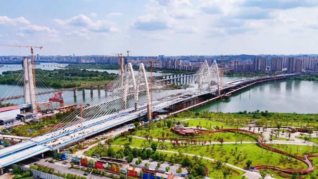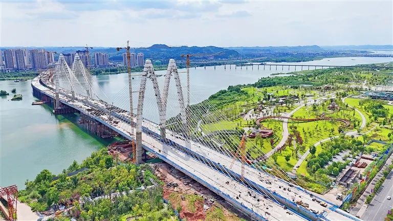 该项目是我市首座双塔斜拉桥,主桥施工进度已达90%以上,目前正加紧实施水域西引桥及主桥上部结构施工。建成后将打通遂宁经开区高铁新城、老城区与市河东新区的跨江通道,有效缓解通德大桥、通善大桥等交通节点的通行压力。