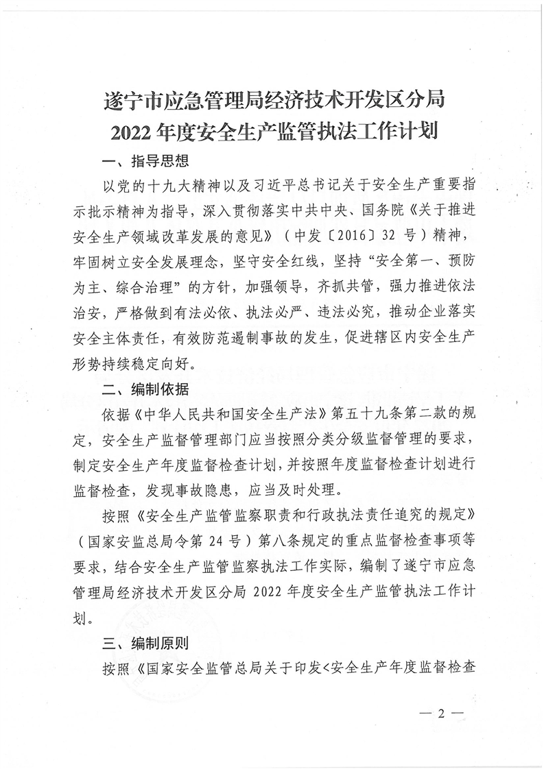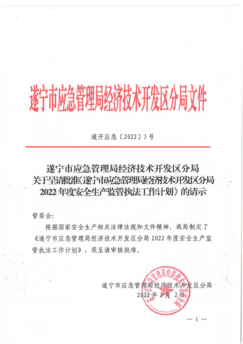 关于呈请批准《遂宁市应急管理局经济技术开发区分局2022年度安全生产监管执法工作计划》的请示