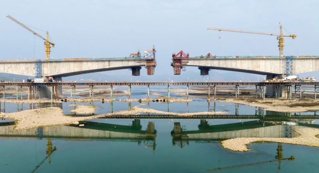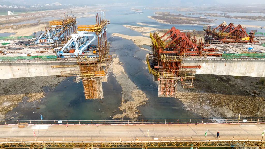 1月4日,遂宁市黄连沱大桥(渡口改公路桥)项目工地上一片繁忙景象,工人们正加快推进主桥建设。