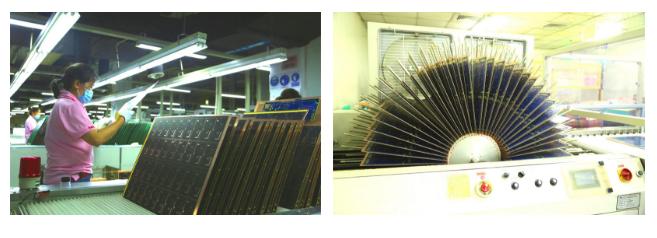 走进志超科技一期生产区,一台全自动印刷机引起记者的注意,机器长达十几米,却不见工人。“机器是今年引进的,一台机器相当于从前的3组生产线,9台设备节约了7个人力。”防焊车间负责人刘军说。