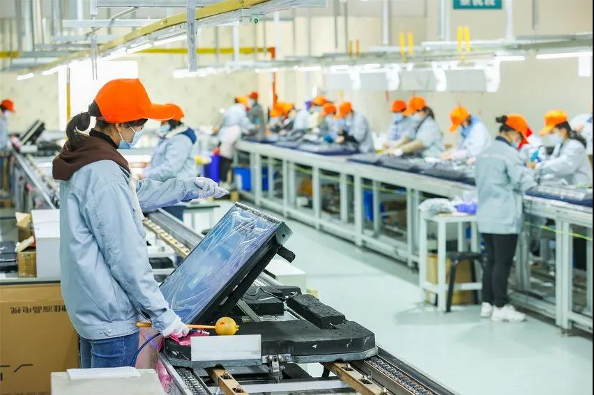 2020年12月遂宁康佳智能科技有限公司成立,全力推动视讯产品基地在遂宁落地投产,打造康佳视讯智能工厂。该智能工厂一期使用十余台六轴机器人,筹建3条模组整机现代化智能一体线,目前厂区月产液晶电视达5万台,年产值可达10亿元以上,预计满产后年产100万台,产值达20亿元/年,拉动当地配套就业岗位500个以上。