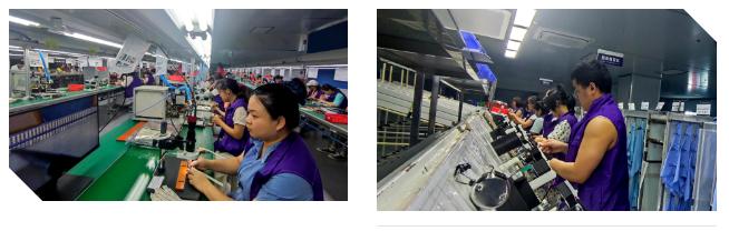 ▲工人在流水线上紧锣密鼓地进行产品组装