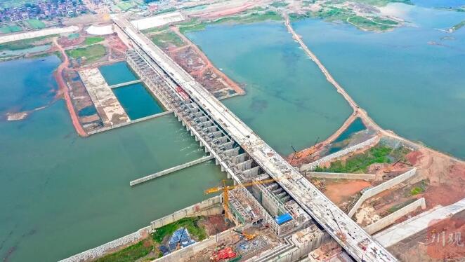 4月12日,遂宁市唐家渡电航暨凤台大桥施工现场一片忙碌。