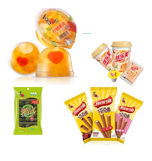 四川喜之郎食品有限公司生产的“喜之郎果冻系列”“美好时光海苔”“优乐美奶茶”“开心时间巧克力饼干系列”等产品主要供应西部地区市场,同时辐射中南市场。