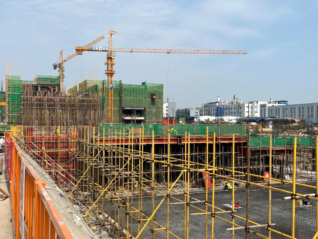 该项目总占地面积35.05亩,共建设7栋单体建筑。目前,两栋厂房主体已封顶,其余5栋建筑正在抢抓主体建设,预计今年7月底全部主体封顶。